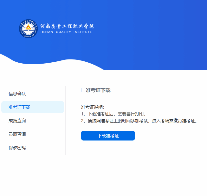 4、点击准考证下载,即可保存本人准考证。